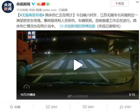 無錫一高架橋發(fā)生垮塌,有車輛被壓