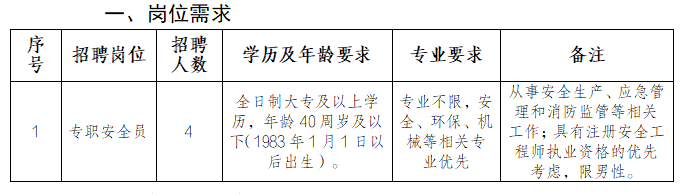 因工作需要,根據(jù)《市政府辦公室關(guān)于印發(fā)〈宜興市鎮(zhèn)級編外用工管理暫行實施辦法〉的通知》(宜政辦發(fā)〔2017〕141號)文件規(guī)定,經(jīng)研究,徐舍鎮(zhèn)人民政府決定面向社會公開招聘專職安全員4名,現(xiàn)將有關(guān)事項公告如下: